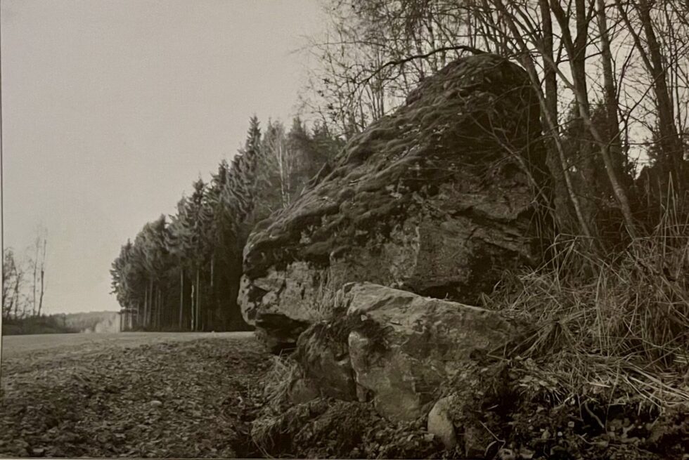 SAMLINGSPLASS: Vesleåssteinen har vært en samlingsplass i Åsa i alle år. Historielaget jobber for at den ikke må bli sprengt vekk, når vegen forbi utbedres. Bildet sto i Åsa-kalenderen i 2006.